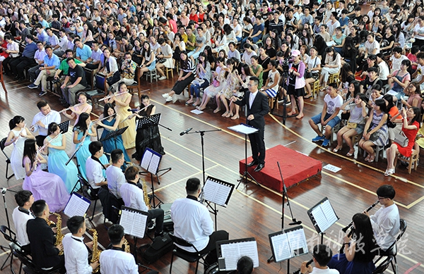典礼在校歌声中结束。