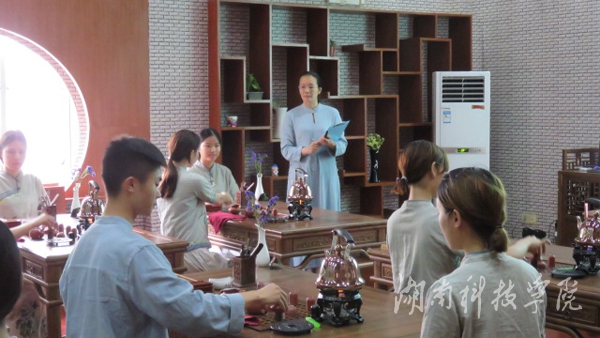 比赛过程中,参赛教师采用不同的教学方法和实验实训形式,各显神通、大胆创新,呈现了一堂堂各具特色、亮点纷呈的实验实训课。理学院李静老师的“网页制作之marquee标记的应用”,首先展示一个动态效果的网站,阐述marquee标记的作用。随后,通过采取启发式教学和讲授、演示、课堂实验相结合的教学方式,让学生运用学习的知识现场动手,完成目标网页的动态展示效果,教学过程中,师生互动效果好。音乐与舞蹈学院刘蓓老师“出收袖组合”采用情景教学的模式,把壮族采茶的劳动场面引入课堂,让学生有身临其境的感受。经济与管理学院刘幼平老师的“台式乌龙二十八法(下)”紧扣当今时代人们需求来设计实训步骤,如茶熏环节,每个学生根据自己的体质和健康状况来选择茶熏材料,实训流程环环相扣,娴熟自然,一气呵成,营造了高雅的艺术氛围。