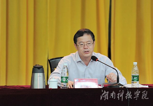 本网讯(记者 杨光月)5月8日上午,第二届永州经济社会发展论坛在我校尚美楼二楼演播厅举行。永州市教育局党组书记、教育局长蒋俊林作题为“以改革精神提升基础教育发展水平”主题报告。