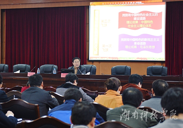 郑昌华以《引领中华民族伟大复兴的战略布局——学习习近平总书记“四个全面”的重要思想》为题,引经据典,结合实例,对习近平总书记提出的“四个全面”战略布局进行了深入解读。他从聚焦主线——开辟中国特色社会主义广阔道路;引领目标——全面建设小康社会筑梦民族复兴;推进动力——全面深化改革建立完善制度体系;治理框架——全面依法治国实现国家长治久安;政治保证——全面从严治党锻造坚强领导核心等五个方面进行了阐述。