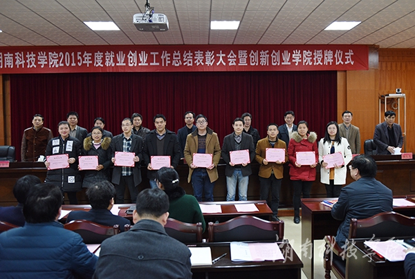 本网讯(记者 张云芳 摄影 何帅文)3月9日下午,学校举行2015年度就业创业工作总结表彰大会,表彰全校在创新创业工作中表现突出的就业创业工作先进单位、就业创业工作进步单位、就业创业工作特色项目和就业创业工作先进个人。