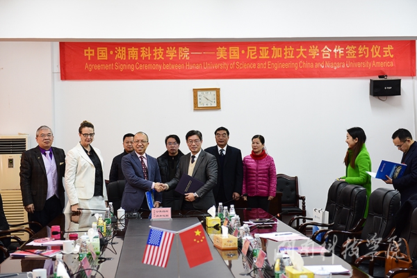 美国尼亚加拉大学商学院李天宝教授与我校电子与信息工程学院院长黄文、经济与管理学院院长李清泉就具体合作项目进行协商。