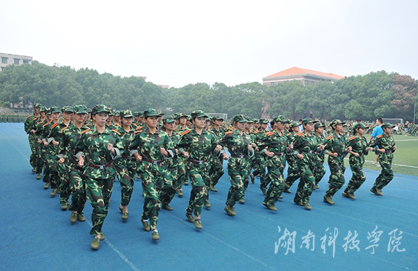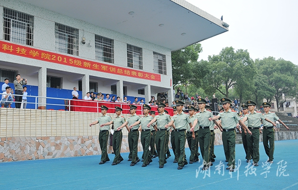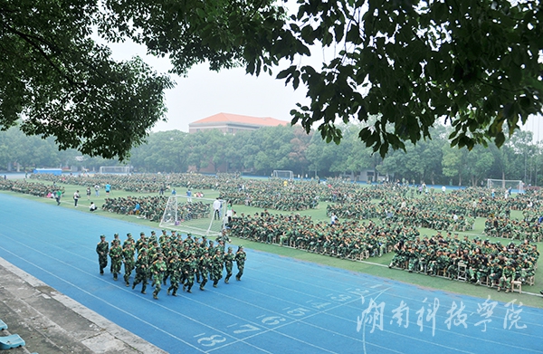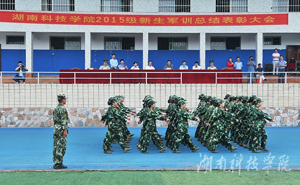 校领导陈弘、宋宏福、李常健 、吴小林、程智开、袁先友,校学工部、武装部部长唐华山及军训团副团长、武警永州市支队教导员周昌祥少校,军训团副政委、武警永州市支队政治处副主任谭杨亮少校在主席台就坐。大会由副校长宋宏福主持。