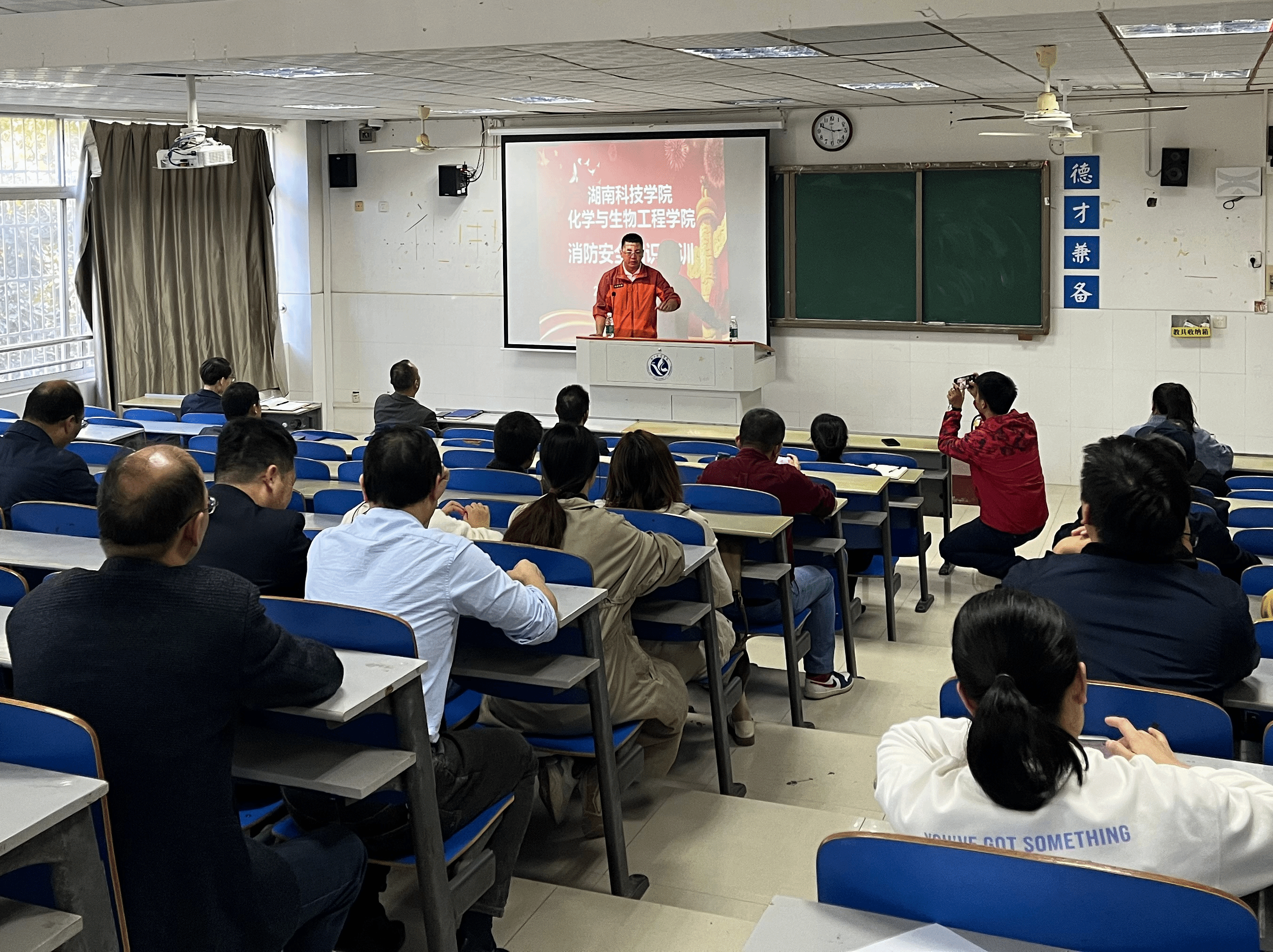 为进一步提高学院全体教职工消防安全意识和自防自救能力,全面筑牢校园消防安全屏障,迎接党的二十大胜利召开,10月11日下午,学院邀请永州市湘安消防公益服务中心宣传员谭塘峰为全体教职工开展消防安全知识培训会,培训会由党总支书记曾二青主持。