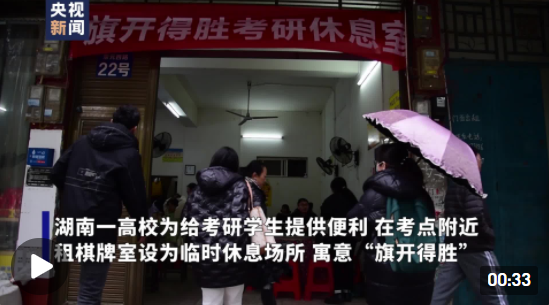 12月25日,2022年全国硕士研究生招生考试正式开考。为了给考生午休时提供一个舒适的休息场所,位于湖南永州的万搏平台想出了一个暖心的办法:在距离考点不到100米的居民区内,租下三间棋牌室,让考生们中午在这里取暖休息、安心备考。