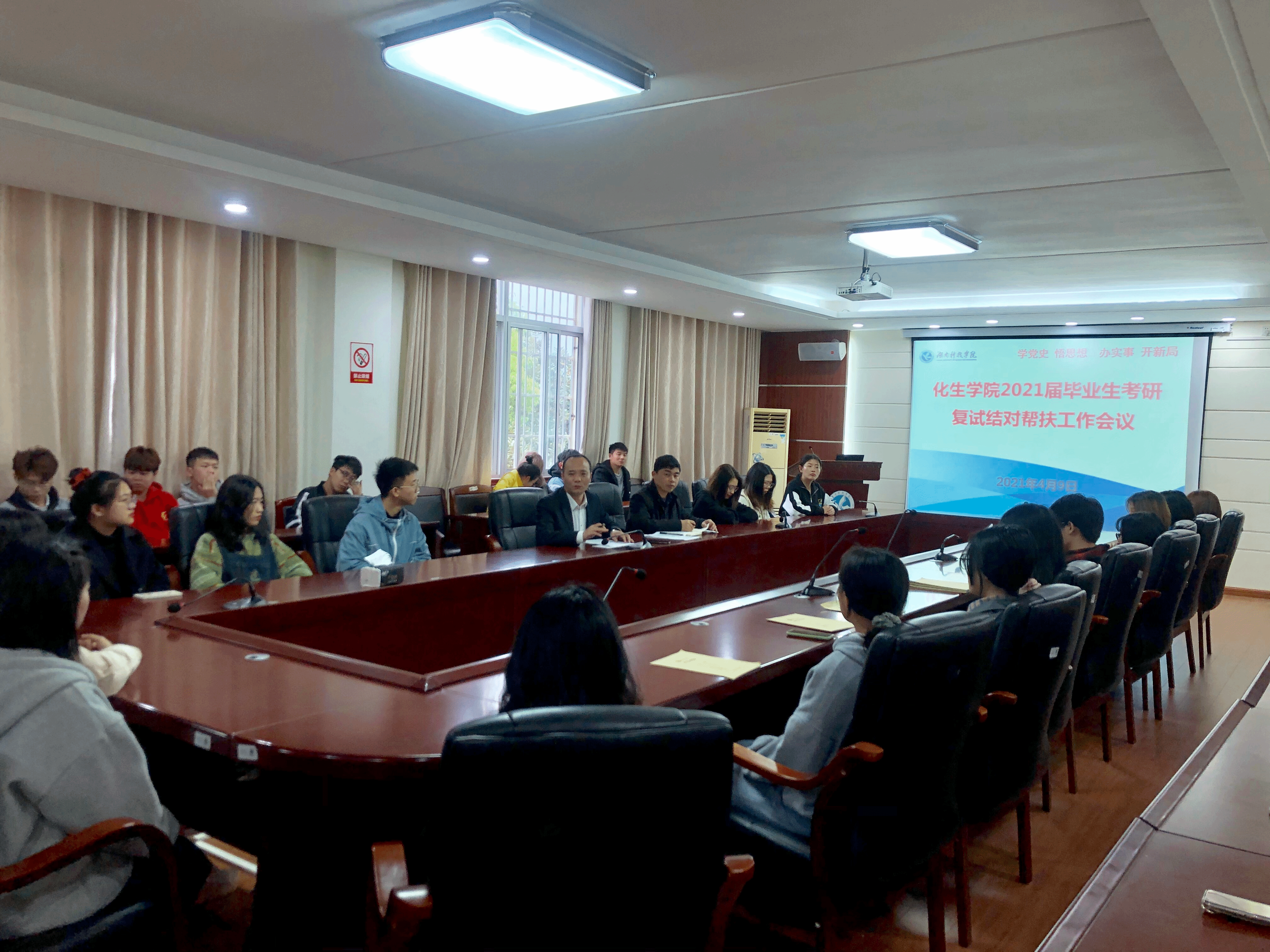 本网讯(通讯员 李燕) 为加强对考研学子的复试指导,采取有效措施为考研学子保驾护航,4月9日下午,学院分两场召开考研复试帮扶工作会议。党总支书记曾二青、副书记任学兵、2017级班主任、辅导员、2017级考研暂未录取学生、2017级考研拟录取学生参加会议。