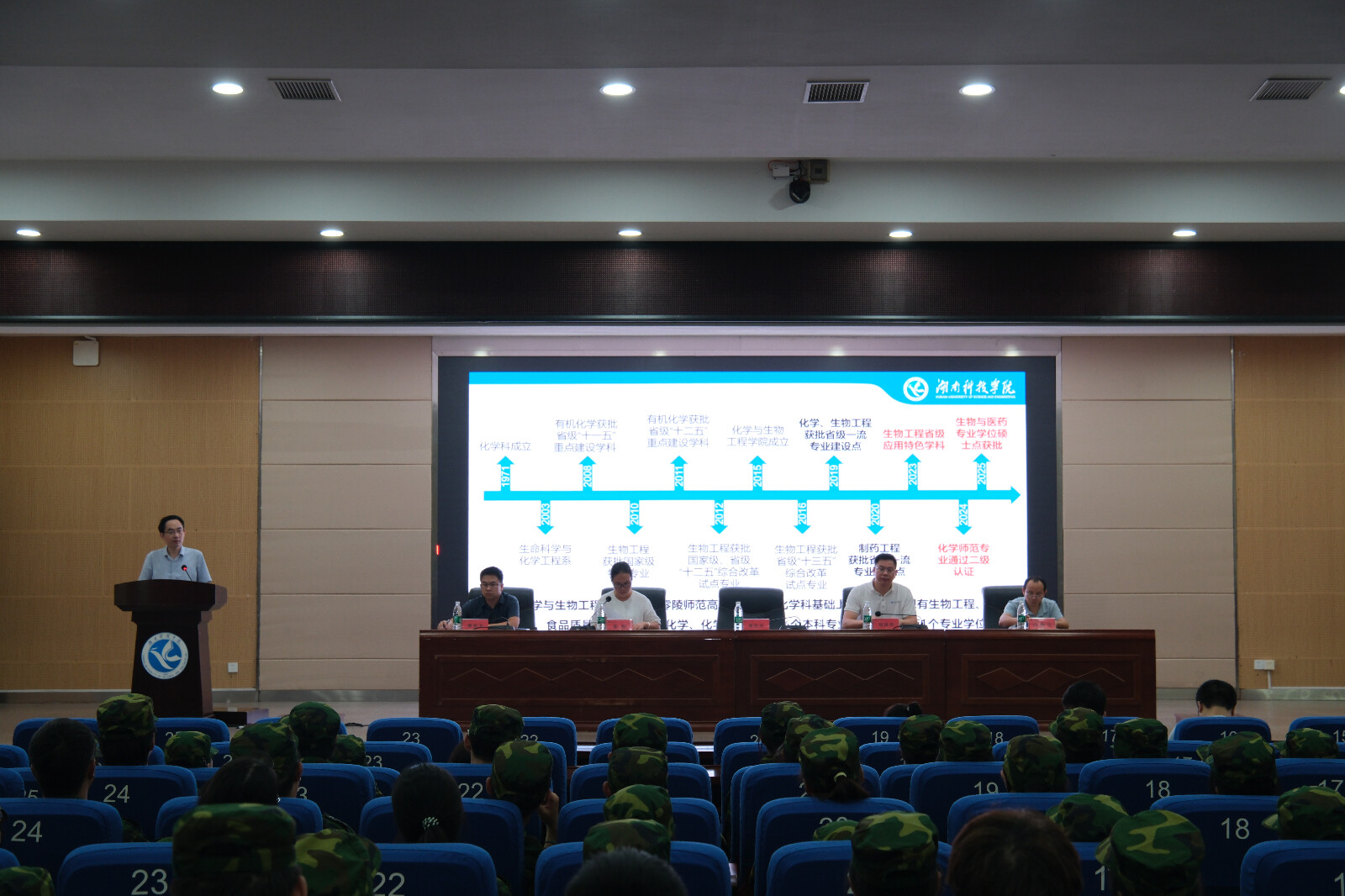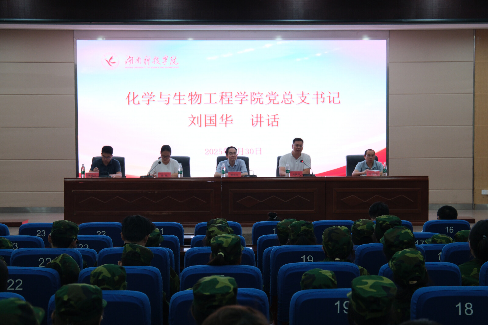 (本网讯 邓盎妍)9月30日晚7点,化学与生物工程学院于潇湘大讲堂召开2025级新生见面会,院领导班子成员、2025级新生辅导员、新生班主任以及副班出席,化学与生物工程学院全体2025级新生参加,会议由党总支副书记基艳主持。