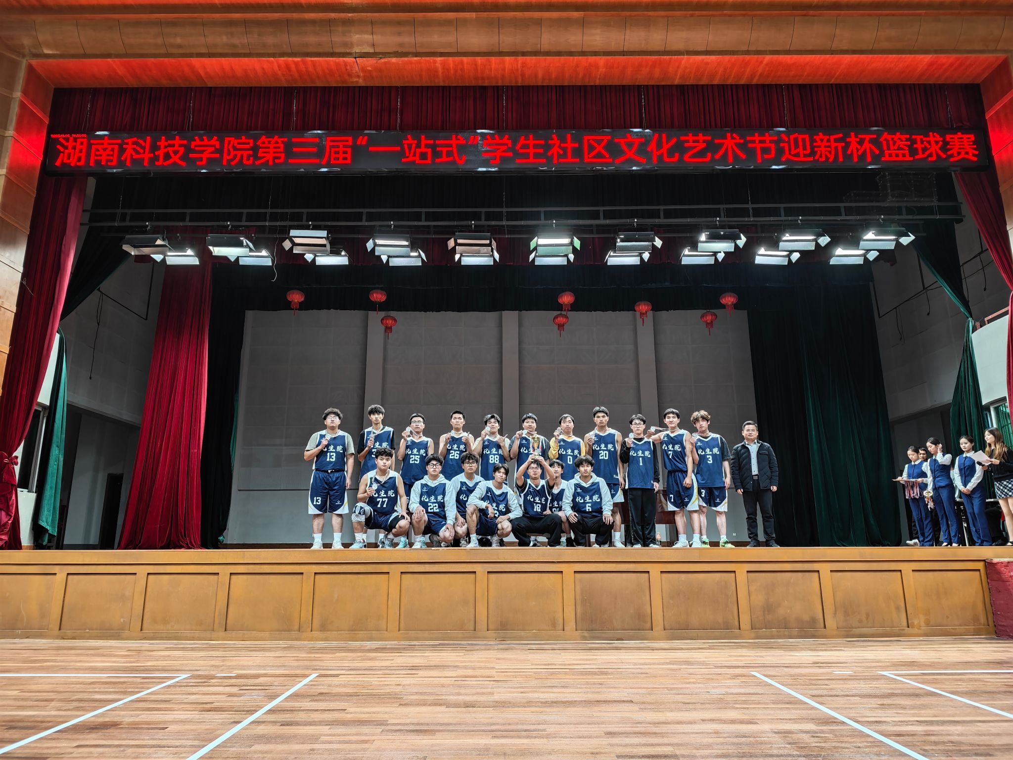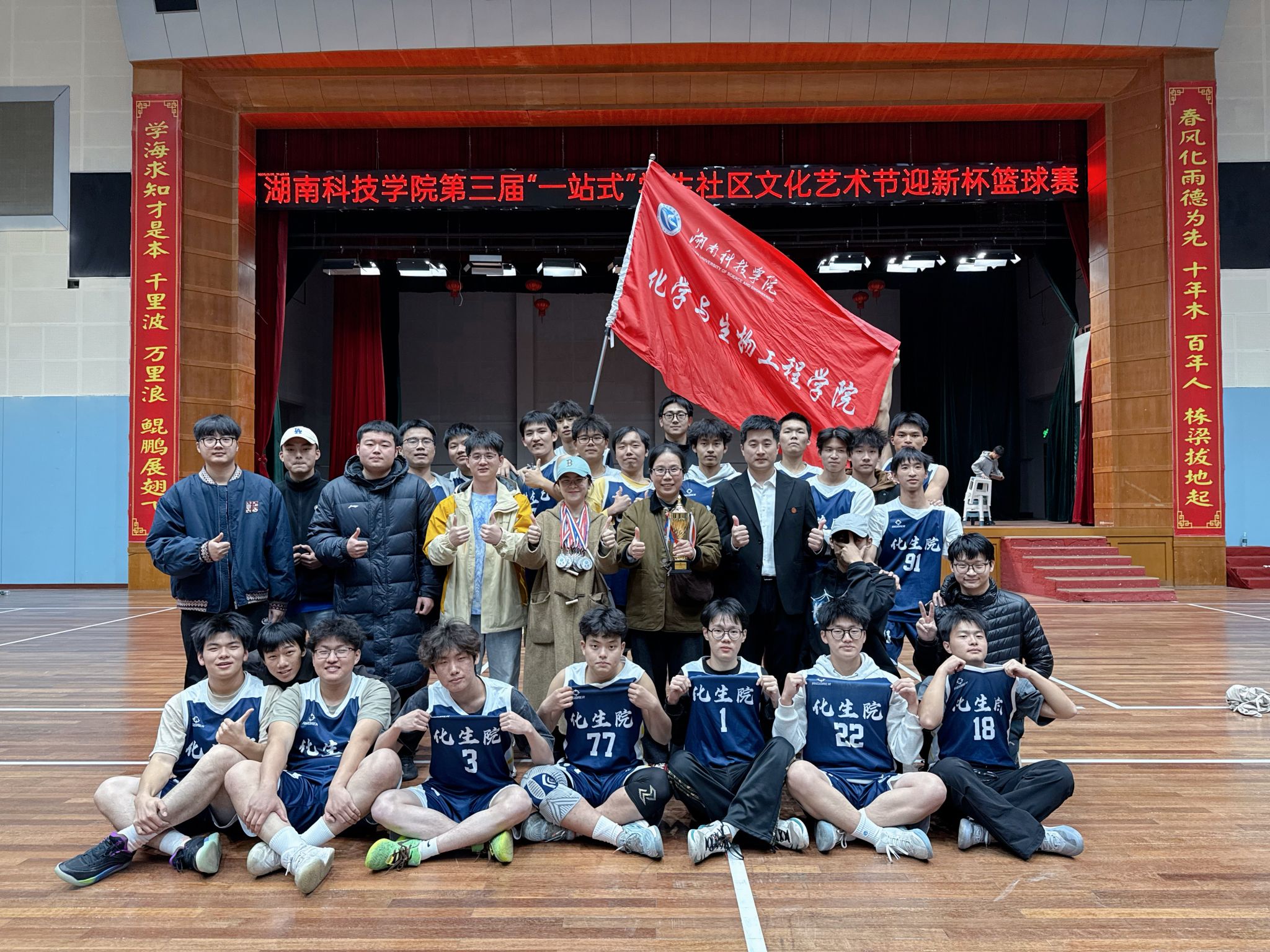 (通讯员 邓盎妍 许甲 陈美艳)11月25日,第三届“一站式”学生社区文化艺术节“迎新杯”篮球赛于万搏平台体育馆圆满收官,我院学子收获男子组亚军的好成绩。本次赛事自11月11日开赛,历时14日,由党总支副书记基艳领队、2名教练员带队、24名篮球运动员团结拼搏,以球会友凝聚青春力量,尽显化生学子拼搏奋进的精神风貌。