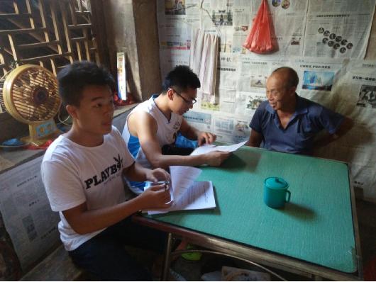 化学与生物工程学院盘俊老师带队的扶贫攻坚小队于新田县新圩镇开展“情系扶贫攻坚”主题活动。经过这些天的实地调研和入户走访,师生三人了解了新圩村、梧村、蒋家村三个村的贫困户基本信息,收集了大量贫困户实际情况。新圩村、梧村、蒋家村三个村已经建档立卡登记在案的贫困户分别为80、100、60户。经实际走访和调查目前几个村中家庭条件困难的村户基本都已经被评为了贫困户,有些家庭情况特别困难,政府还给予了低保和兜底补助。有特殊困难的家庭,除了政府的帮扶,乡亲街坊也伸出看援助之手。新圩村,谢见生就是这样一户人家。谢见生家中有五口人,他本人患有家族遗传性疾病,老婆患有精神疾病,两个儿子也患有侏儒症且智力发育有一定问题,他还有一个老迈的母亲需要照顾,家里房子也在前几年倒了,是新圩村最贫困的户,全家都缺乏劳动能力全靠政府救济养活。现在他住在政府和村里乡亲集资帮忙建立的新房子里。他说:“没有政府的帮助,我一家就活不下去了,是政府和父老乡亲给了我新的生命”。梧村也有着这样一户特别的贫困户,户主刘友发从1993年起就腰椎粉碎性骨折,下半身瘫痪整天卧病在床,八十多岁的老父亲腿脚残疾,妻子患有精神疾病,全家全靠他儿子女儿在外地打工,家里为了给刘友发治病花了很多钱,负债累累现在还未还清,家里房子也已属于危房了,一到下雨天就到处都在漏水。鉴于他家的特殊情况,政府给予了最高级别的低保补助以及各类补贴,临走时他说道“没有政府的帮助,我们早就活不下去,感谢党和政府对我们的关怀,给予了我们新生命”。
