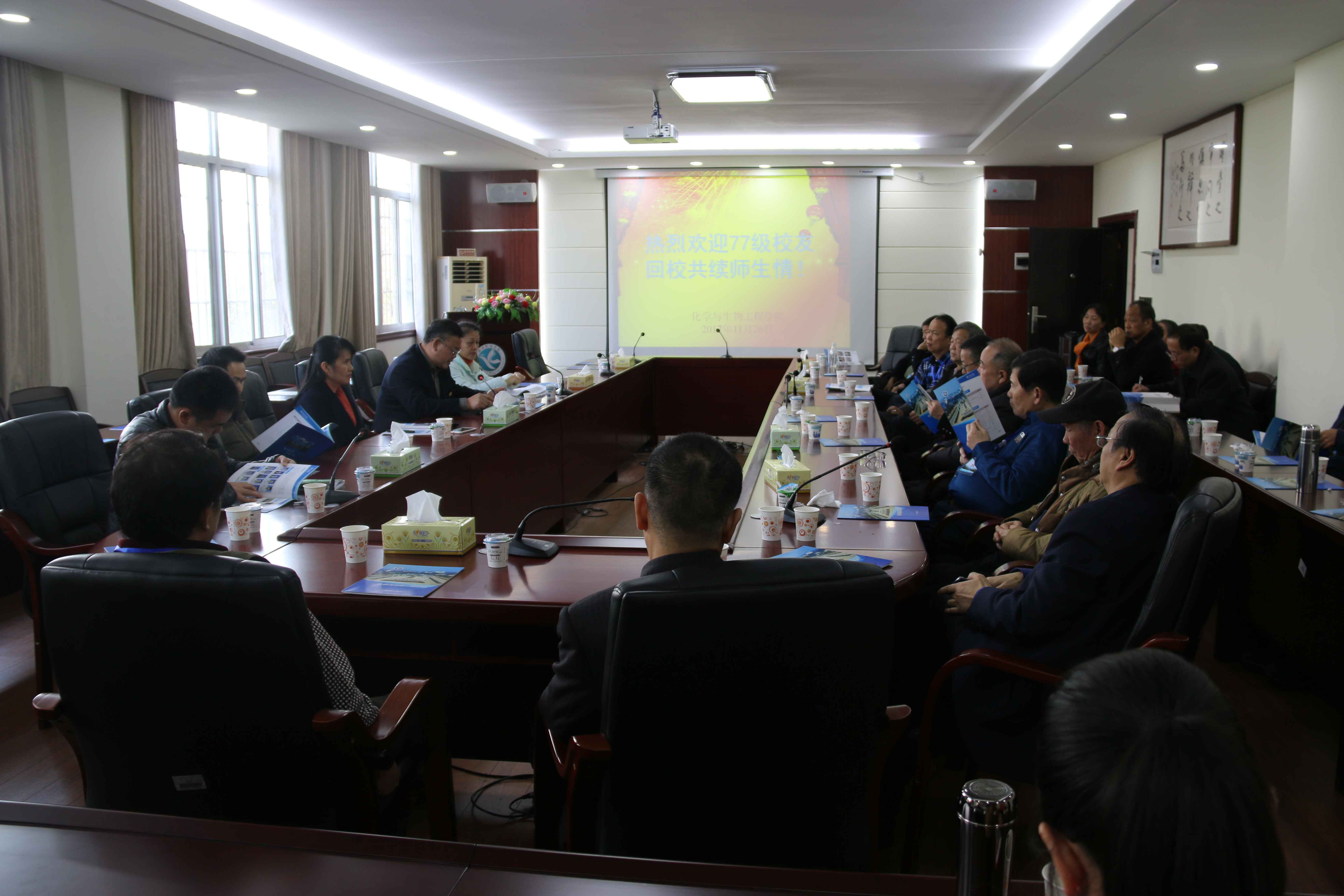 本网讯(通讯员 许欢 李劲)11月26日下午1时30分,纪念恢复高考四十周年暨1977级化学七班校友座谈会在逸夫楼320隆重举行。化生院院长何福林、副院长刘芳、副院长欧光川、院党总支副书记高丹出席本次座谈会。