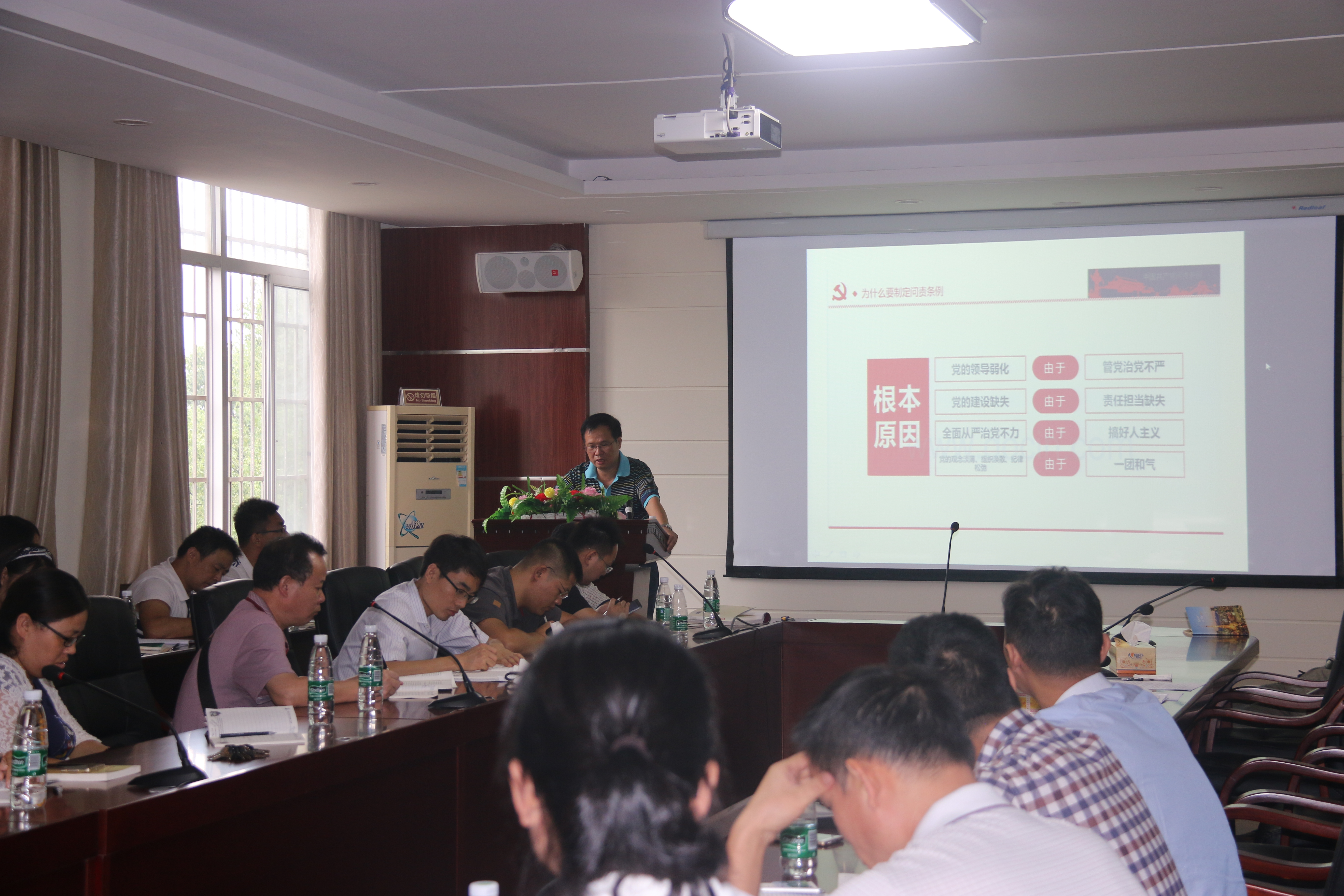 按照既定学习计划,上午的学习包括观看视频和书记讲党课两个环节。全体党员观看了习近平总书记在建党95周年七一讲话的视频,学院总支书记赵雨云带领学习了《中国共产党问责条例》,总支副书记曾二青上了一堂题为《树德、正品,永葆党员先进性》的专题党课。参加学习的全体党员同志学习认真,做好笔记,会场还不时响起掌声,取得了很好的学习效果。