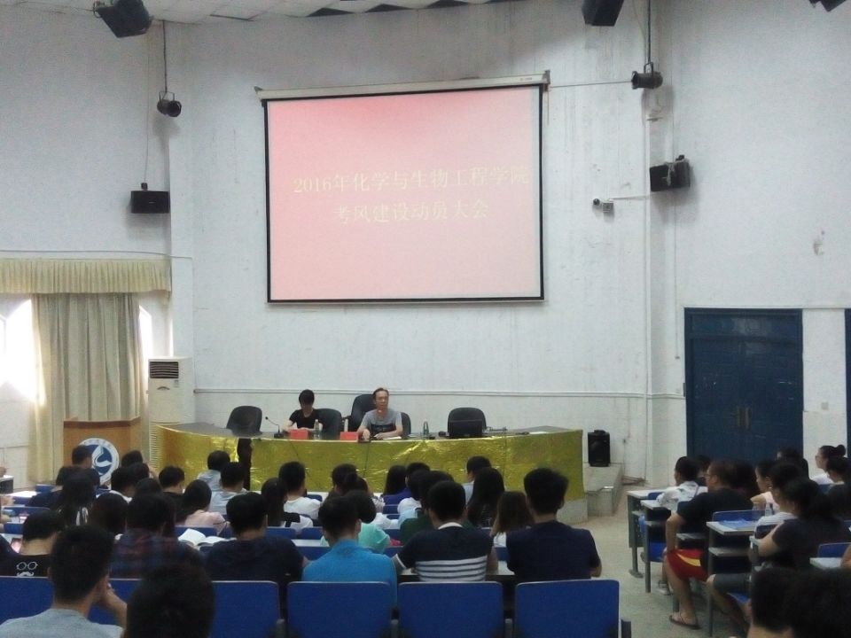 本网讯(通讯员 夏慧聪)6月14日上午,化学与生物工程学院在日新楼212召开2016年上期考试动员大会,组织全院学生集中学习《万搏平台考试违规处理办法》,强化学生诚信考试意识。