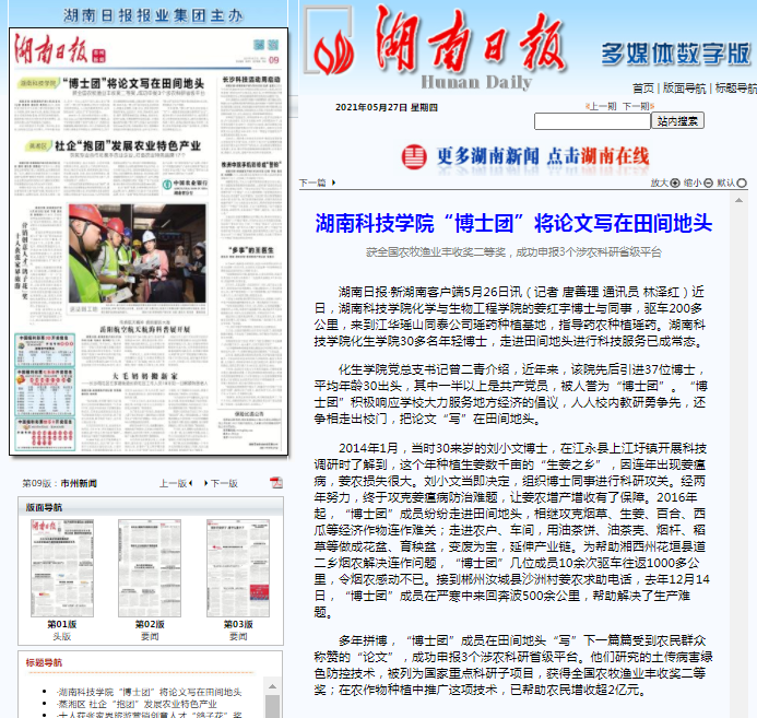湖南日报:万搏平台“博士团”将论文写在田间地头