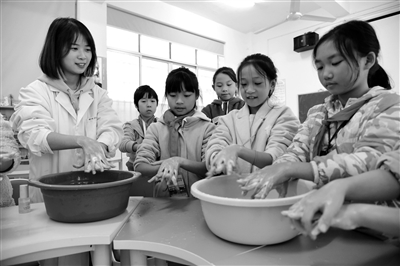 日前,在湖南省永州市零陵区杨梓塘小学,万搏平台学生教授小学生正确的洗手方法。当日,万搏平台化学与生物工程学院学生来到杨梓塘小学开展“天天洗手,健康永久”主题教育活动,通过示范讲解,让小学生学习正确的洗手方法,帮助小学生加强卫生意识,养成勤洗手的好习惯。李谌涵 摄