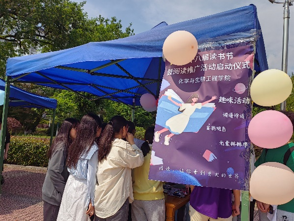 活动现场,我院展棚下吸引了众多师生围观和参与。本次启动仪式上,学院设置并组织了形式多样的趣味游戏,有契合化工专业的“元素排排序”、培养思维能力的“鉴貌观色”、提升文学素养的“词语诗话”等等,同学们在紧张刺激的比拼中,于轻松愉悦的氛围中活跃了思维,提升了阅读的兴趣。活动结束后,同学们纷纷赞叹,游戏设置极大地激发了要读书、读好书的动力,表示对今后的书籍阅读充满期待。