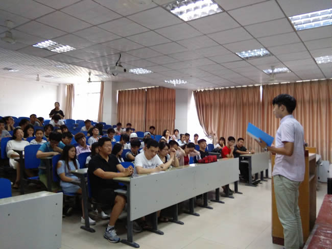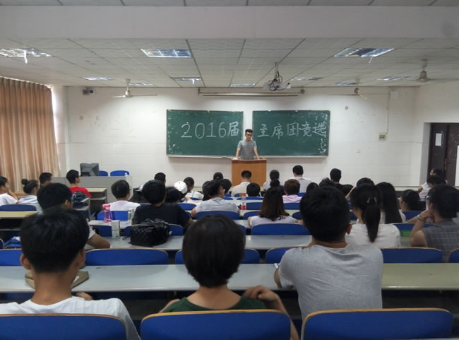 本网讯(夏慧聪 龙玉洁 董烁 卓林毅)6月5日下午,化生院于逸夫楼218举行分团委与学生会主席团的竞选演讲。学工办主任饶赟、13级辅导员陈丽琼、14级辅导员邓平洋、15级辅导员杨忠定、吕冰出席此次竞选活动,分团委、学生会全体成员到场观看。