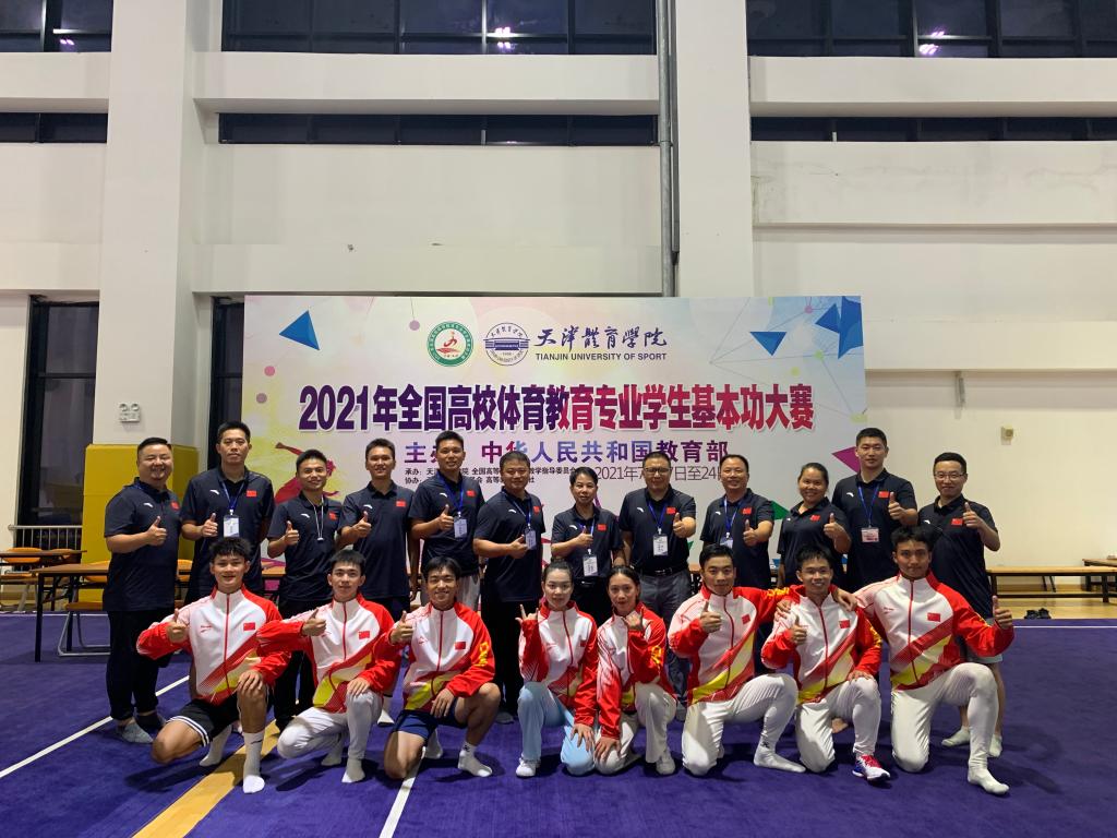 针对不同类型学科竞赛成立专门的教练团队,根据赛事项目分小组进行系统指导,将学科竞赛纳入实践教学与人才培养模式改革创新的建设中,与学生所学专业紧密结合、与学生专业核心技能培养紧密结合、与课堂教学紧密结合。同时,强化学生教学技能训练,积极开展师范技能比赛,形成“以赛带训、以赛促学”以点带面的教学模式,通过层层的教学技能竞赛及训练,带动更多的师范生对教学技能实践训练,帮助学生更好地完成从师范生到准教师的角色转换。近年来,学院学生在各类体育赛事中屡获佳绩,获2019年省体育教育专业学生基本功大赛运动技能类团体一等奖、团体总分二等奖;2021年全国高校体育教育专业学生基本功大赛运动技能类团体二等奖、基础理论知识与教学技能团体二等奖、团体总分二等奖(全国第六名);2024年湖南省师范生课堂教学竞赛三等奖等等。
