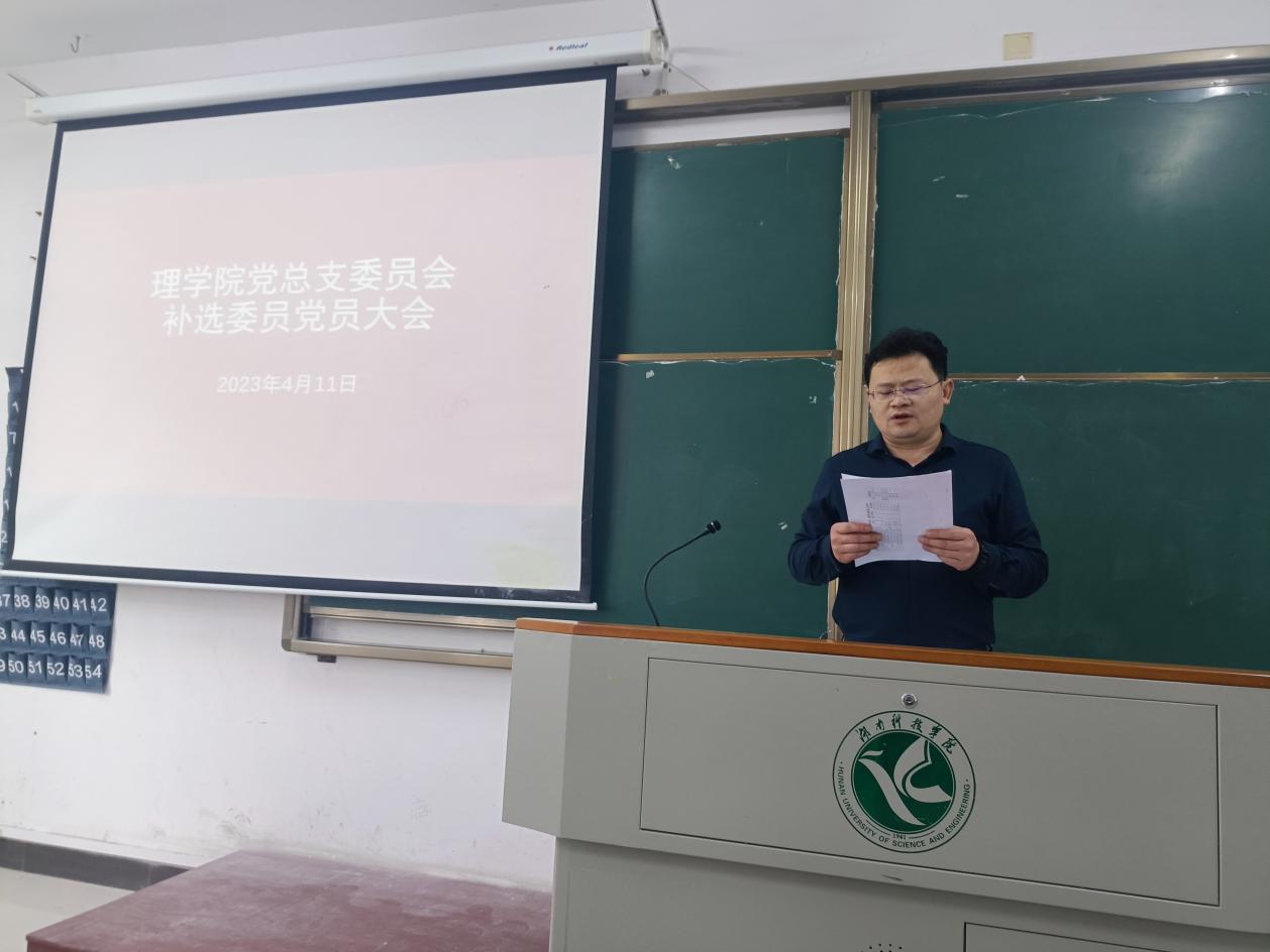 本网讯(通讯员 邢妍)因干部工作调动,理学院党总支部分委员职位出现空缺,根据《中国共产党基层组织选举工作条例》有关规定,经理学院党总支委员会研究报学校党委批准,差额补选两名党总支委员。4月11日下午,理学院党总支在明理楼502召开理学院党总支补选委员党员大会,会议由党总支书记唐卫华主持。