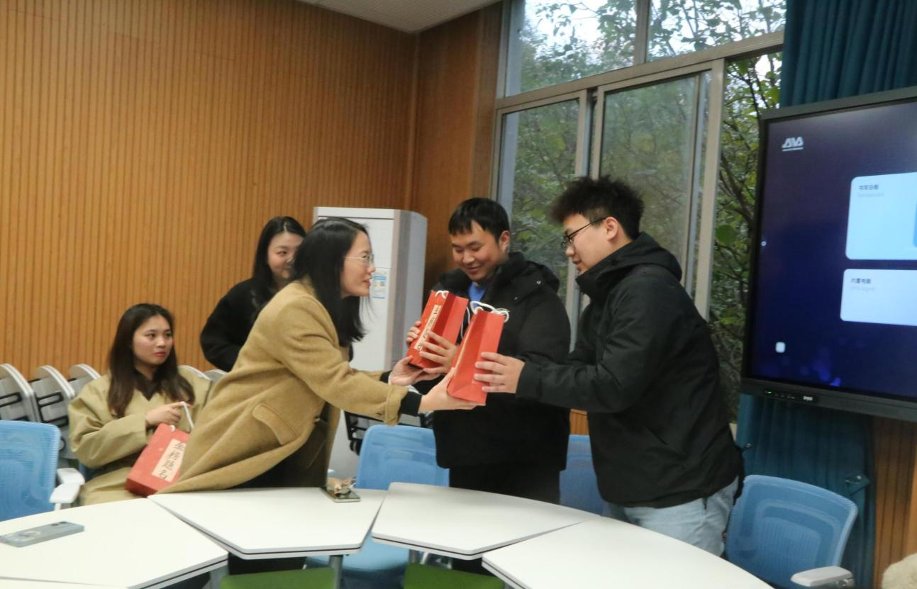 物理2103班颜芳萍表示:“深受鼓舞,太用心了,收到由学院领导、毕业班辅导员、班主任老师、学弟学妹手写的明信片祝福、督促考研学子学习的精美相框、祝愿考生“柿柿”如意的小柿子、刻有“诸事皆宜”的钥匙扣、“逢考必过”的企鹅小公仔,全部装在金榜题名的考研加油包中,这是我收到最有意义的礼物!”