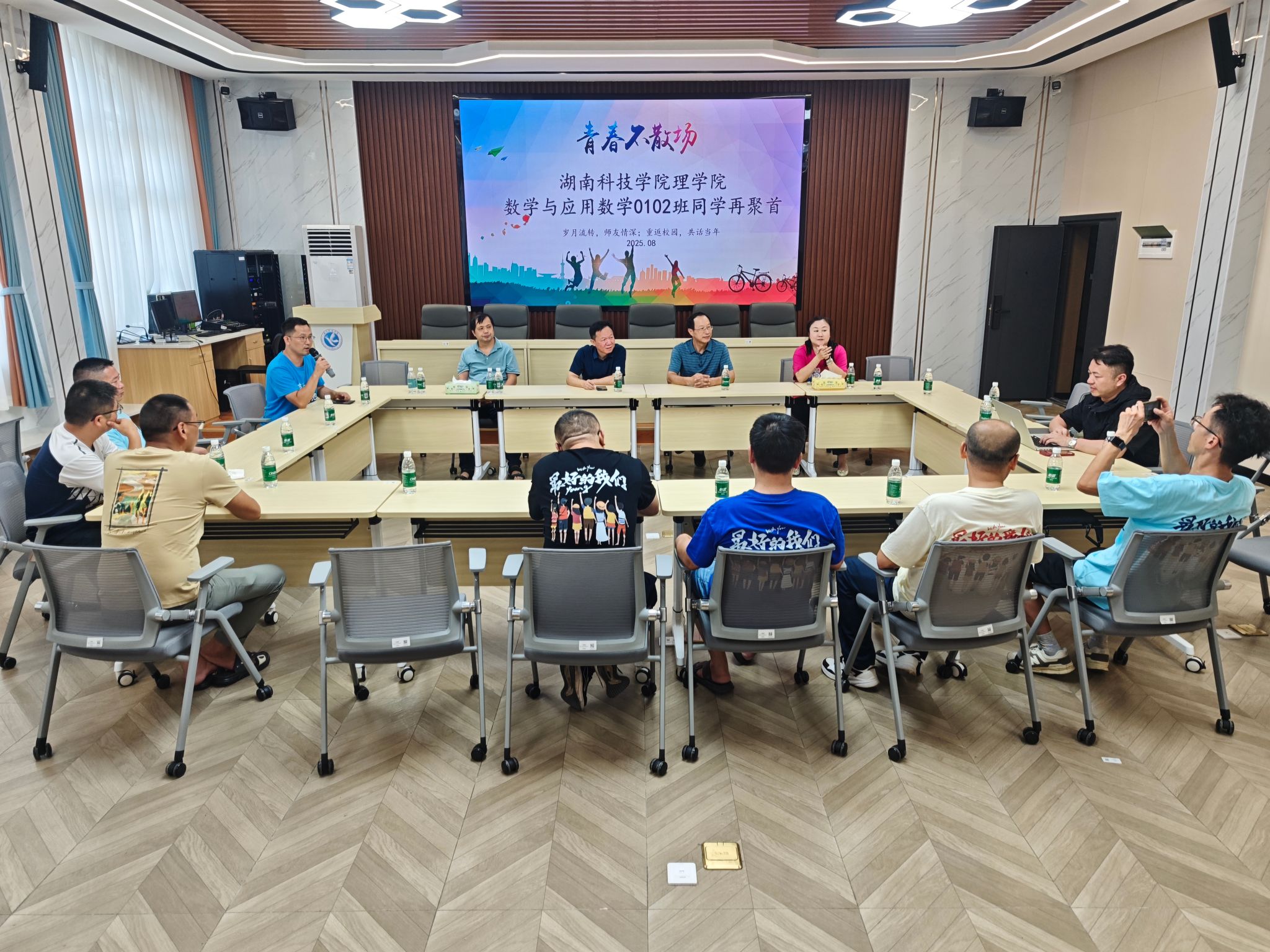 本网讯(通讯员 龙枚樱)8 月 2 日下午,理学院数学与应用数学专业 2001 级 2 班毕业二十周年座谈会在明理楼 101 报告厅举行,十余名校友重返母校,与恩师共话情谊。理学院院长唐耀平携领导班子成员、学院老领导石循忠、原辅导员冯煜出席活动。