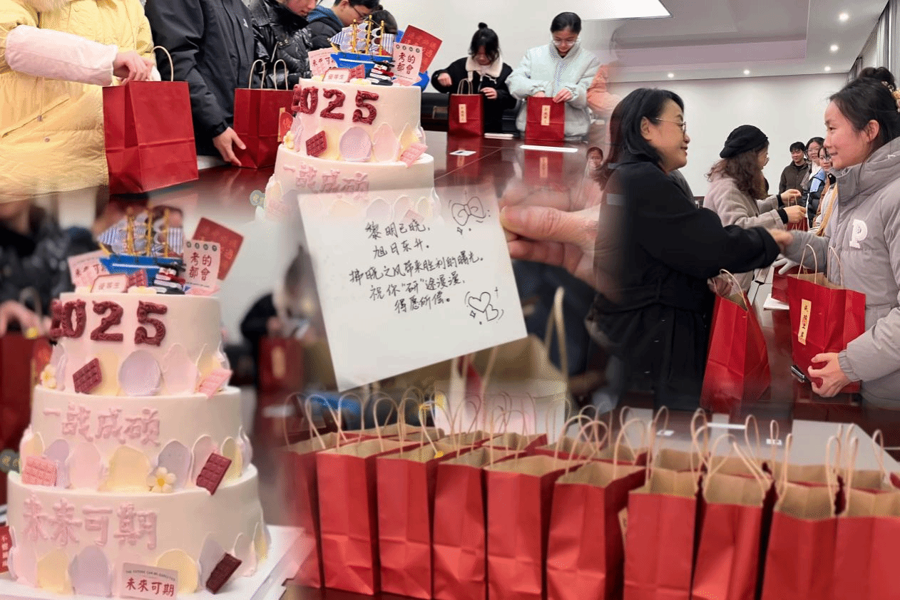 最后,领导老师们分别为同学们切分蛋糕,并送上“上岸福袋”,同学们纷纷感谢各位老师给予的关心与祝福,表示一定不会辜负老师的期望,会认真学习,积极备考,以饱满的热情迎考。