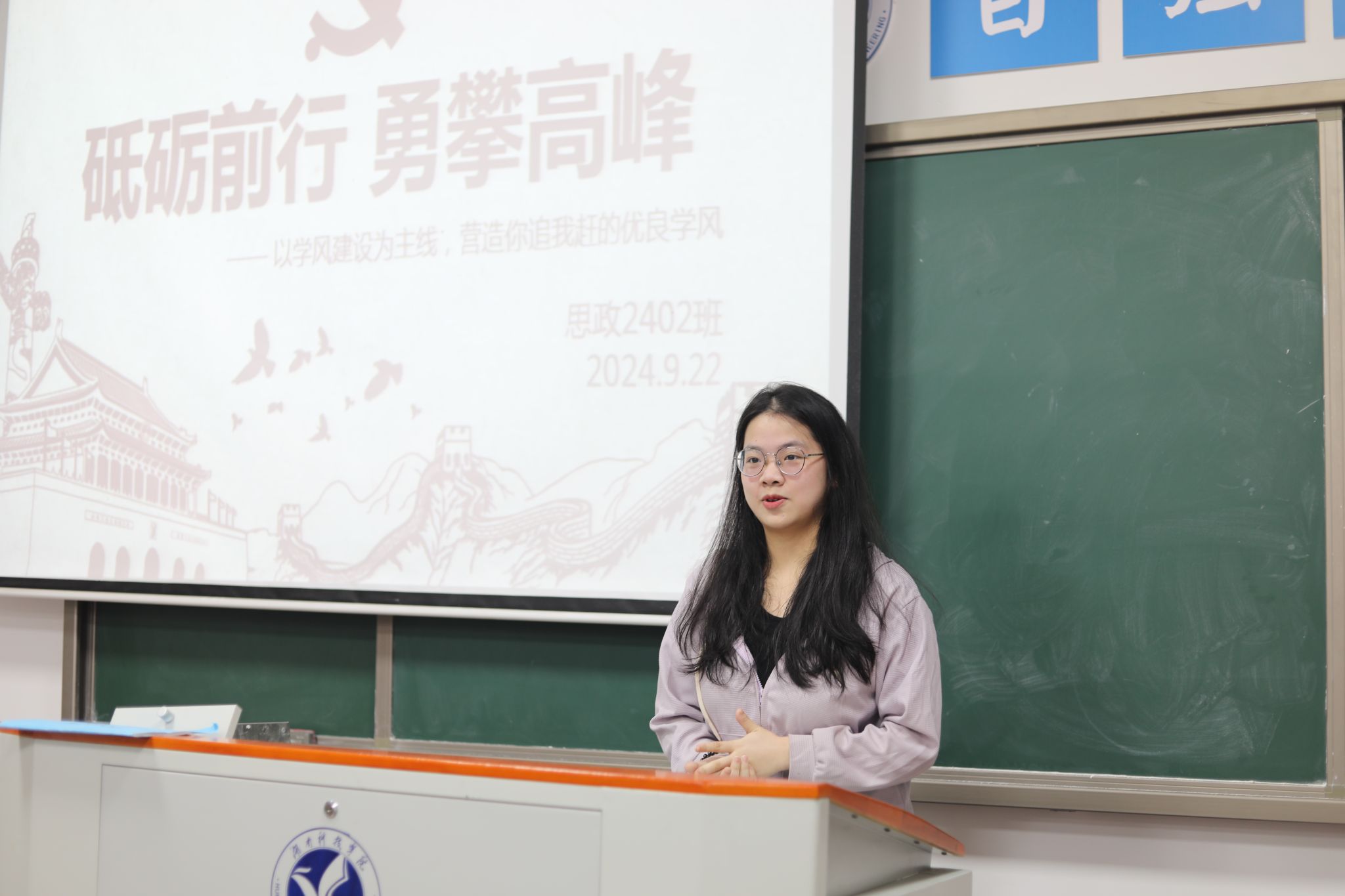 “班会中,学长学姐积极分享自己的学习方法和心得,让我受益匪浅。我认识到,要形成优良学风,需要每个人的共同努力和坚持努力,为班级学风建设贡献自己的力量。”思政2401班周锦穗说。
