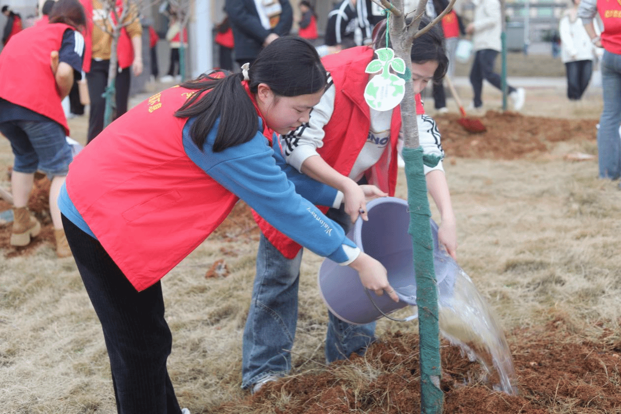 活动现场,马院师生们热情高涨,分工明确,有的挥锹铲土,有的扶苗填坑,有的提桶浇水,师生间紧密协作,配合默契,每一棵树苗的栽种都饱含着大家对绿色未来的期待,为校园种下了一株株“希望”之树。
