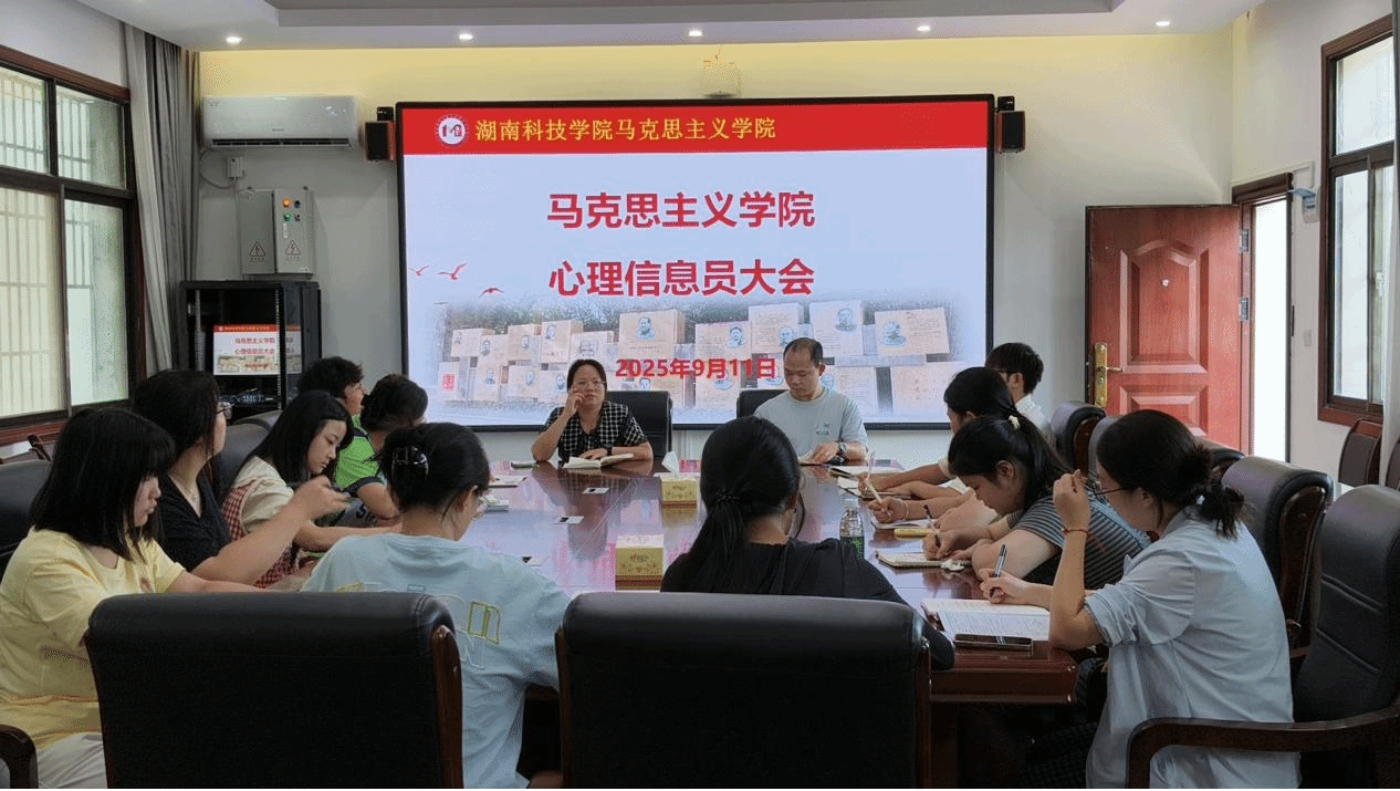 本网讯(记者 刘亮靓)为切实做好新学期学生心理健康工作,精准把握学生心理动态与实际需求,9月11日下午,马克思主义学院于鹤鸣楼405教室召开本学期第一次心理信息员会议。本次会议由心理专干曹惠如和辅导员吴志伟老师主持,23、24级各班心理信息员参会。