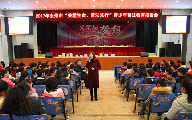 本网讯 (通讯员 李艳)为帮助广大青少年学法、知法、守法、用法,树立法治意识和依法治国理念,近期,永州市关工委牵头组织了以“关爱明天 普法先行”为主题的青少年普法教育巡回宣讲活动。我校马克思主义学院教师管敏应邀作为宣讲团成员参加了此次宣讲活动。