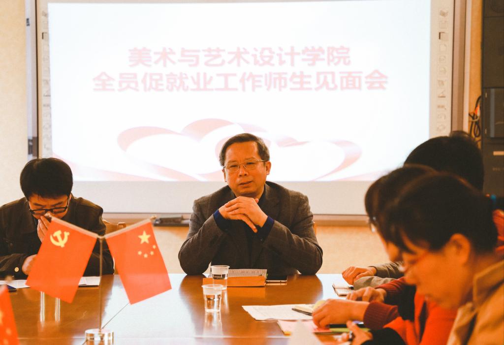 会上,张建利介绍了美术学院2019届毕业生与2018级新生的基本情况,对各位指导老师的辛勤付出表示衷心的感谢,对目前大学生的就业情况和就业形势进行了分析,对学院本年度全员促就业工作进行了全面的部署和安排。