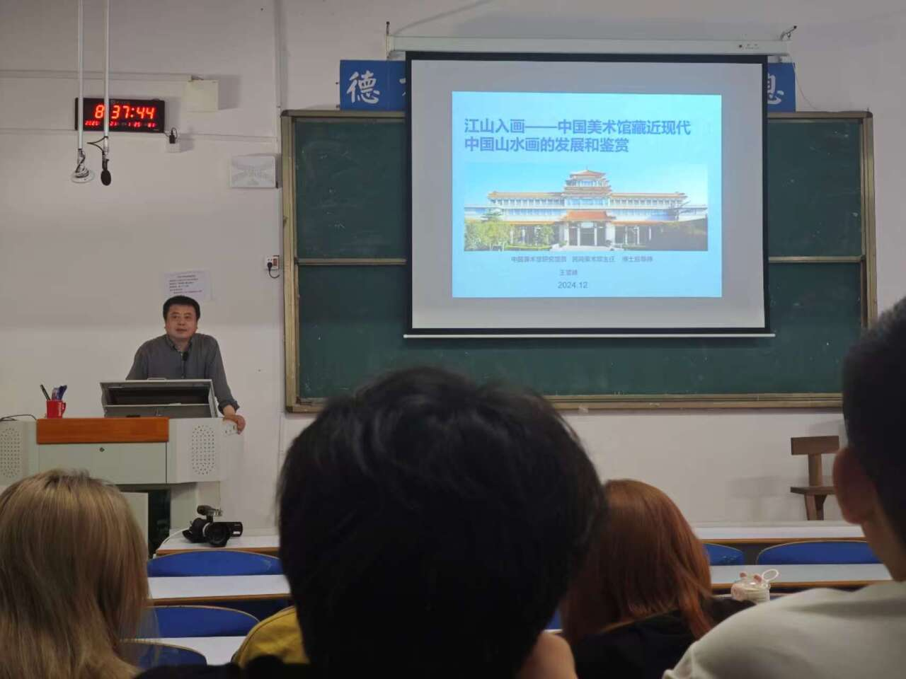 本网讯(通讯员 宋宗爱)4月21日上午,中国美术馆研究馆员、博士后工作站导师、民间美术部主任,中国美术家协会会员,中国评论家协会会员王雪峰博士应邀来美术与艺术设计学院举办讲座,学院美术学专业师生参加了本次讲座。