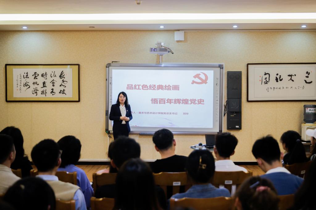 为丰富党课内容,增强党课吸引力,刘华根据学生专业特点,结合当前的党史学习教育,从中国共产党的成立到中国特色社会主义进入新时代,选取了24幅红色经典绘画作品,再现中国共产党成立100年来波澜壮阔的光辉历程。刘华在讲解作品的艺术性的同时,为学生讲述作品背后感人肺腑的党史故事,带领学生领略信仰之美,感受中国共产党带领人民筚路蓝缕、艰苦奋斗,开辟中国特色社会主义道路的伟大精神。