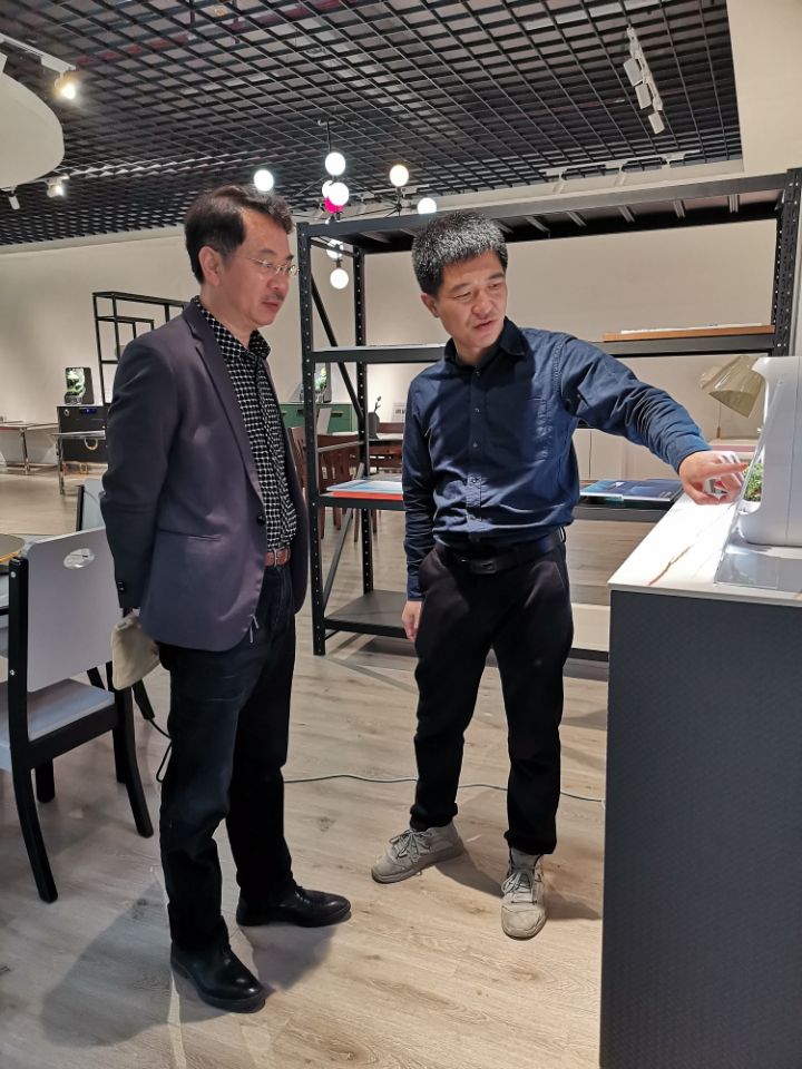 本网讯 近日,我院院长张建利、副院长柏小剑一行赴双牌工业园,与湖南鼎新增材研究院有限责任公司负责人夏换博士交流,双方研讨了校企合作的先期合作项目:微景观设计和制作、宠物家具、创意家具(合作举办设计大赛)、陶泥打印等,公司也应邀来我院进行深入考察,共同推进产教融合。