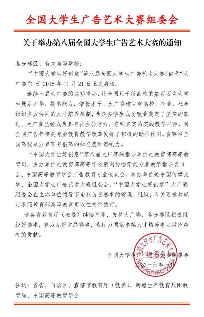 (二)参赛选手需打印2张报名表(1张分赛区存留、1张报送大广赛组委会)。报名表须加盖所在学校或院系公章。