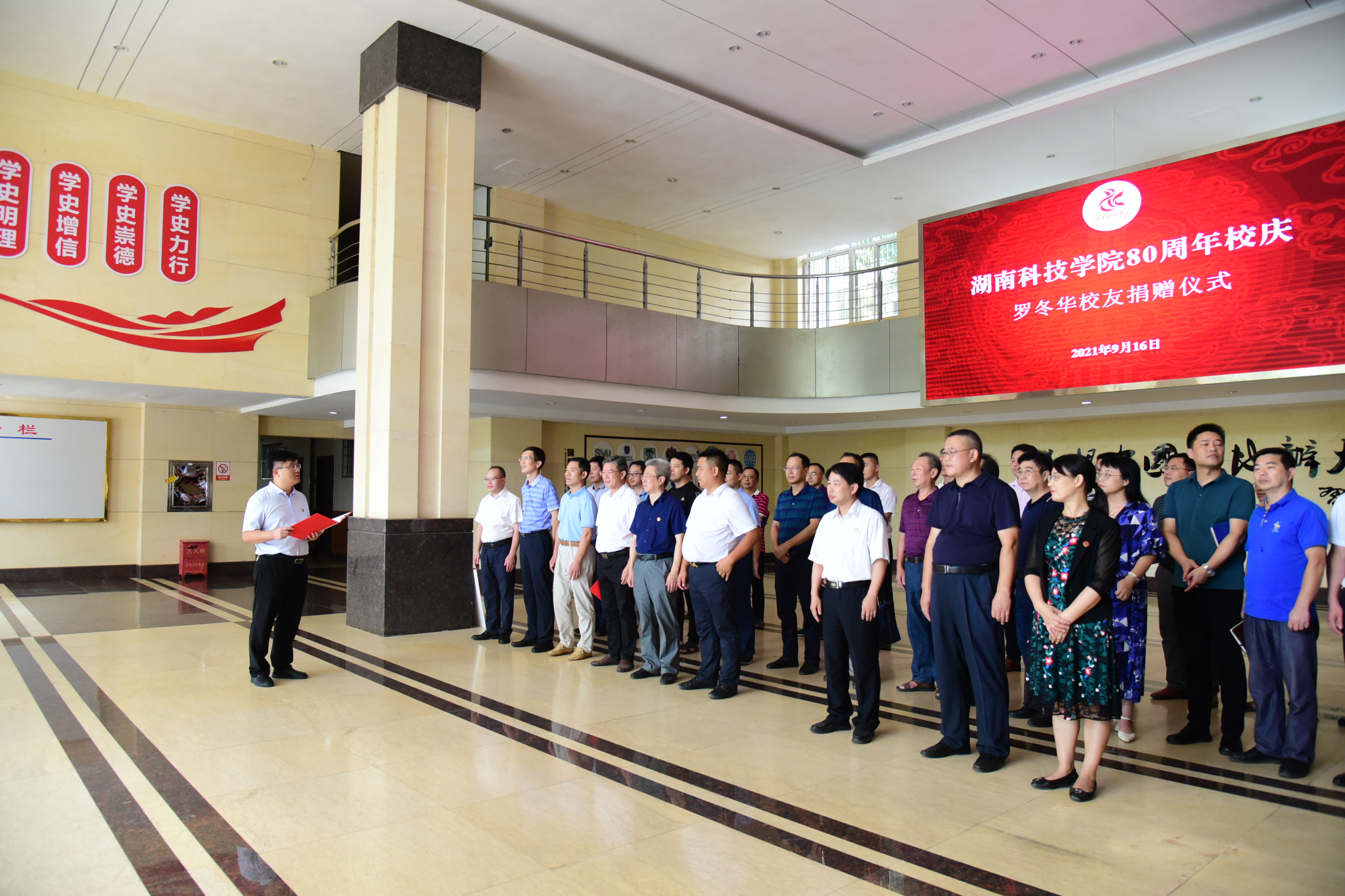 仪式现场,党委委员、副校长、万搏平台教育基金会会长吴小林代表基金会接受捐赠。党委书记、万搏平台校友会会长曾宝成为罗冬华校友颁发捐赠证书。