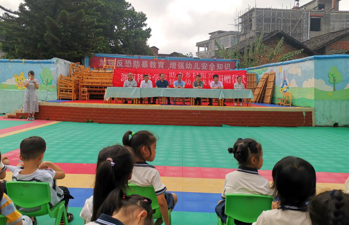 本网讯 9月16日上午,学校向江永县桃川镇中心幼儿园捐赠幼儿床位仪式在桃川镇中心幼儿园举行。党委委员、副校长吴小林,工会常务副主席石循忠、学校乡村振兴工作队队长谢韶光、江永县政协副主席尹玲、桃川镇中心小学校长张祖洁、桃川镇中心幼儿园园长韦金慧等参加了仪式。