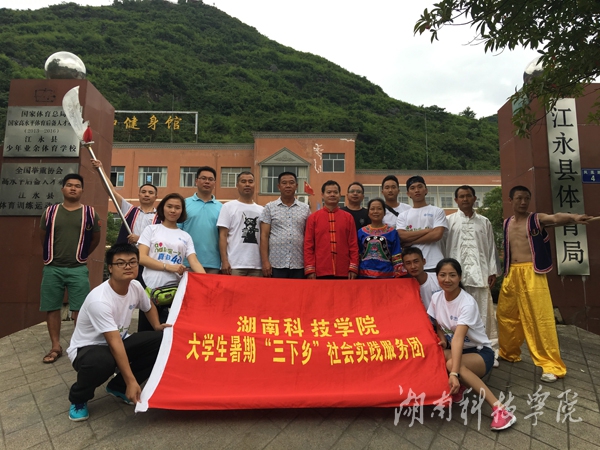 7月2日,体育学院“三下乡”社会实践服务团——“瑶山论武”团队一行10余人前往永州市江永县对瑶族民俗体育进行调研,了解瑶族盘王武术的发展历史及特点,探索盘王武术民俗体育资源的开发与利用。该团队实践方式以调研、武术学习与交流表演为主,把专业技能和社会调研相结合,符合学生全面发展需求,团队指导老师既有科研能力强的教授,又有专业水平高的武术老师。