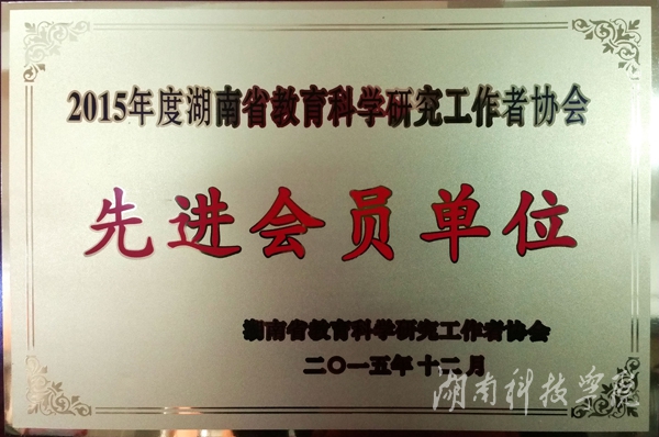 本网讯 日前,湖南省教育科学研究工作者协会2015年学术年会在长沙召开,我校被评为2015年度湖南省教育科学研究工作者协会先进会员单位,李德团、李文等老师撰写的论文荣获湖南省教育科学研究工作者协会2015年度优秀论文一等奖。副校长宋宏福教授出席。