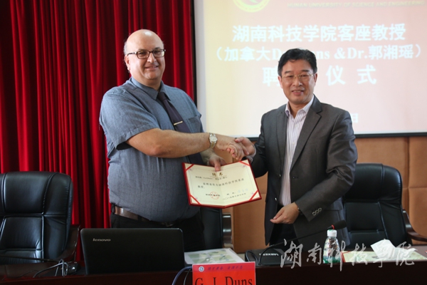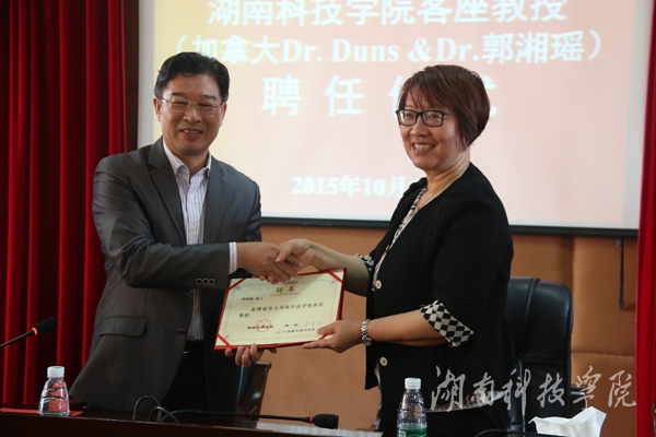 本网讯(记者 许剑桥)日前,加拿大Greg Duns博士及夫人郭湘瑶博士从我校副校长宋宏福手中接过万搏平台客座教授聘书。宋宏福表示,Greg Duns博士及夫人郭湘瑶博士的加入,将加强我校与国际的科研合作,拓展科学研究的国际视野,对于指导和推动我校省重点实验室的相关课题研究,进一步发挥我校在该领域产学研项目的先进性和特色性带来新的发展机遇。