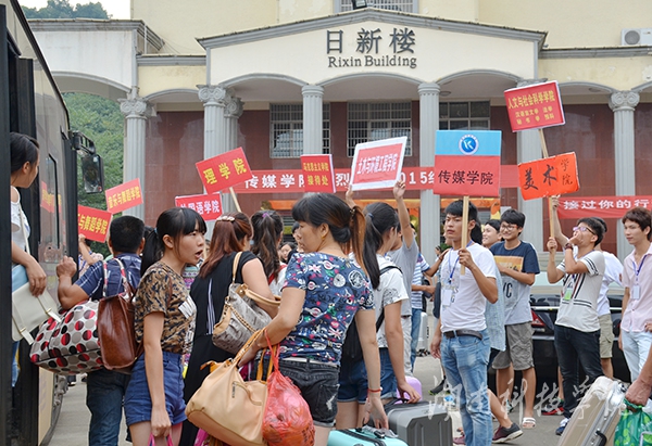 本网讯 9月12日,校园中一道道彩虹门、一条条横幅标语、一顶顶迎新帐篷、一个个忙碌身影,勾勒出喜迎八方学子的热闹景象。4000余名2015级新生将从祖国的四面八方汇聚来校,开始他们多姿多彩的大学生活,更开启他们追逐梦想的新征程。(摄影 何帅文 陈福月 李慧 )
