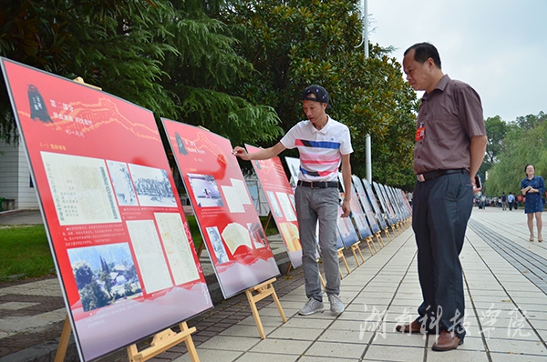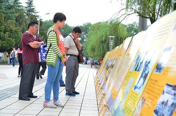本网讯(记者 张敏杰 摄影 张贵)以史为鉴,可以知兴替。9月12日至13日,我校与零陵区委区政府在爱莲湖畔联合举行纪念中国人民抗日战争暨反法西斯战争胜利70周年图片巡回展。