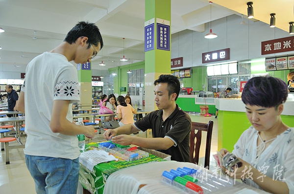 食堂开业期间暂不能刷餐卡,进入食堂一楼时可以购买餐券。据了解,学生刷卡的设备随后也将安装好,大家很快就可以刷卡就餐了。