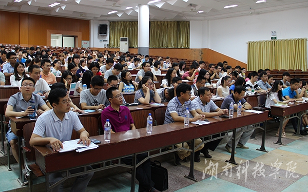 本网讯(实习记者 周芬 摄影 何帅文) “肩负时代重任,胸怀青春信念。群英荟萃在潇湘,校园永远是春天……”伴随着校歌《潇湘之歌》的嘹亮歌声,8月22日,我校在明德楼一楼报告厅举行2015年新进教师岗前培训班开班典礼。校党委委员、副校长宋宏福主持典礼,校党委委员、副校长郑山明、李常健等领导出席。