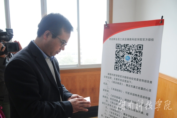 本网讯(记者 李瑛 摄影 何帅文)11月11日,校党委书记陈弘、校长曾宝成、校党委副书记唐艳明及相关职能部门负责人、部分学生代表共同见证了我校官方微信的正式上线。