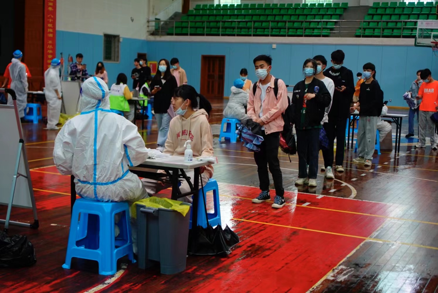 据悉,学校此前已于4月4日-4月6日、4月12日-4月13日、4月21日、4月28日、5月5日分别开展了第一、二、三、四、五次全员核酸检测工作。每次核酸检测工作均由我校新冠肺炎疫情防控工作领导小组统一部署,分时分组在体育馆进行。体育馆内设置1~8号台,1号台负责教职员工及住校家属的核酸检测工作;2号台负责离退休教职工及住校家属、保安、保洁、食堂工作人员、校车驾驶员等临时务工人员、租房户、校内合作企业工作人员等人员的核酸检测工作;3~8号台负责全体学生的核酸检测工作。