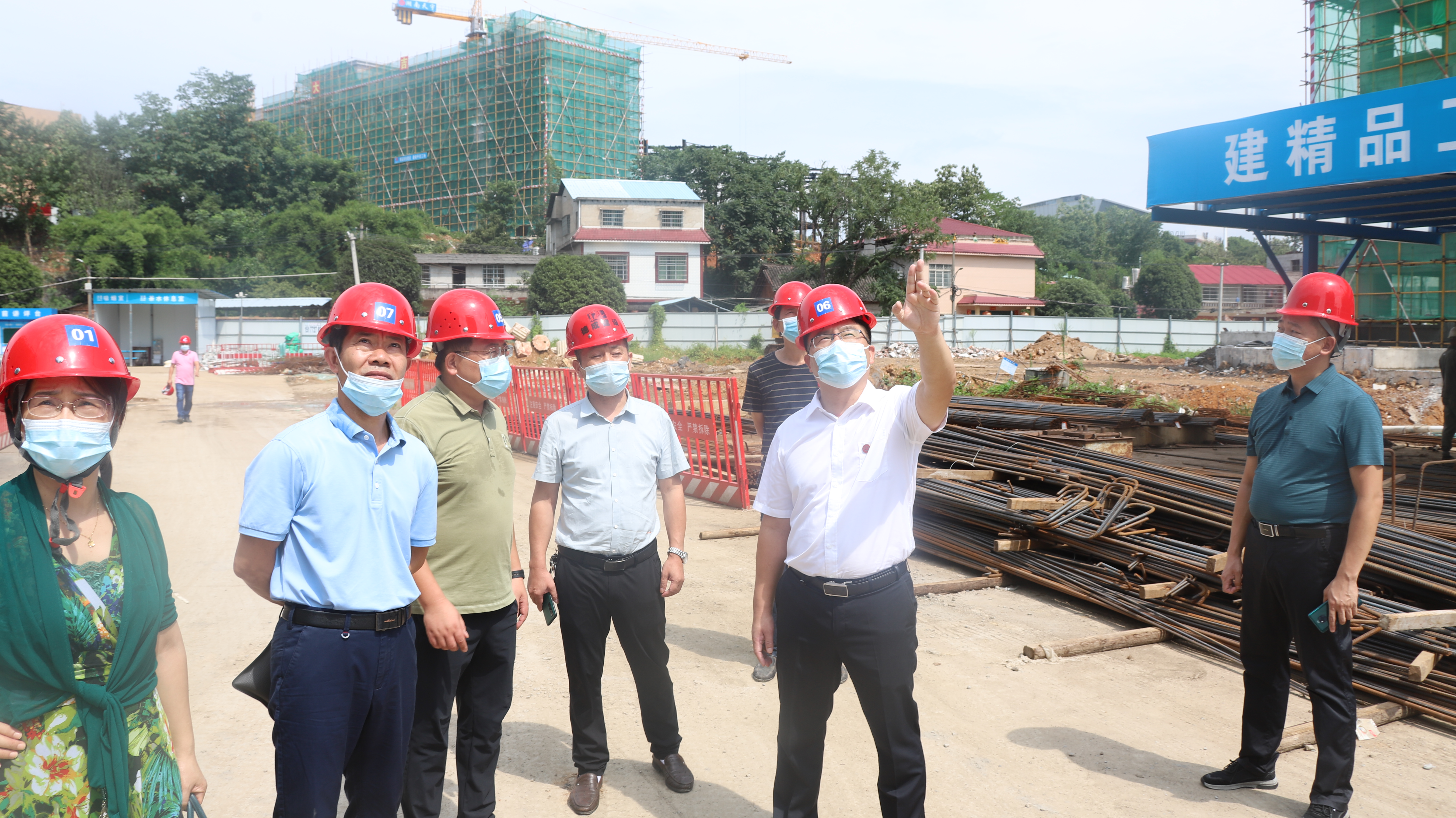 在工程实训中心教学楼、棚改房、行政楼电梯改造、学生公寓、教师家属楼智能水表改造点,李钢每到一处便亲切慰问工作人员并细细询问工程进展情况,重点强调了疫情防控和质量施工、安全施工,要求相关部门和一线在岗人员注意防暑降温,坚守岗位,乐于奉献,确保学校暑期各项工作有序推进。