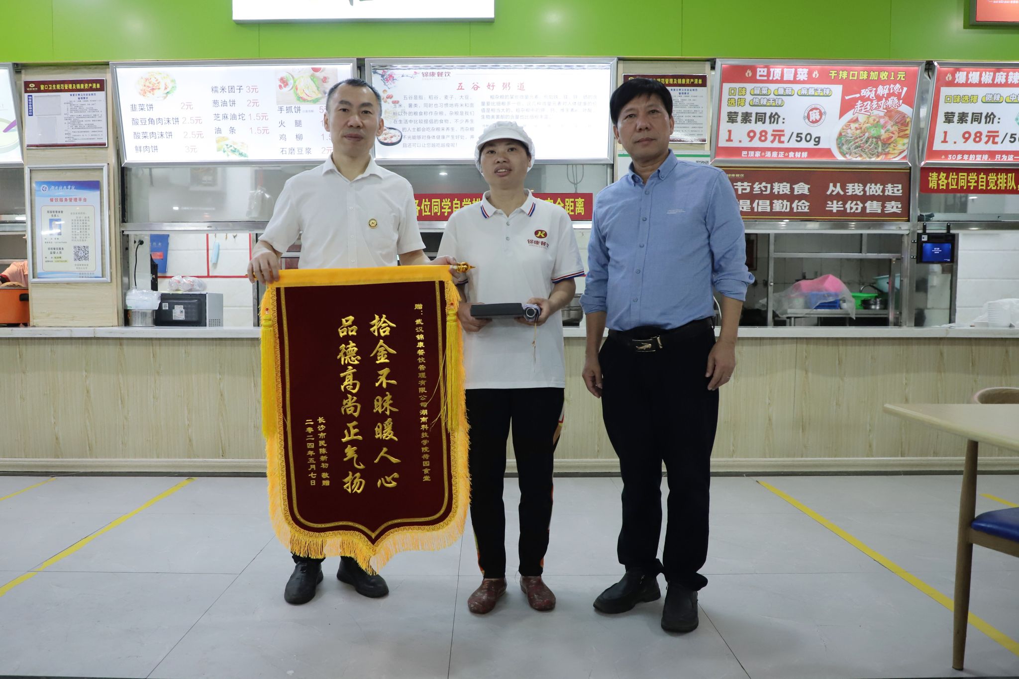 本网讯“特别感谢万搏平台,让我非常感动,也真切的感受到永州人民、科院师生的热情好客,善良淳朴,永州景美人美心灵更美。”近日,我校荷园食堂收到了一面绣有“拾金不昧暖人心,品德高尚正气扬”的锦旗及一封感谢信,感谢食堂员工蒋冬梅的拾金不昧,为学校的管理育人水平点赞。