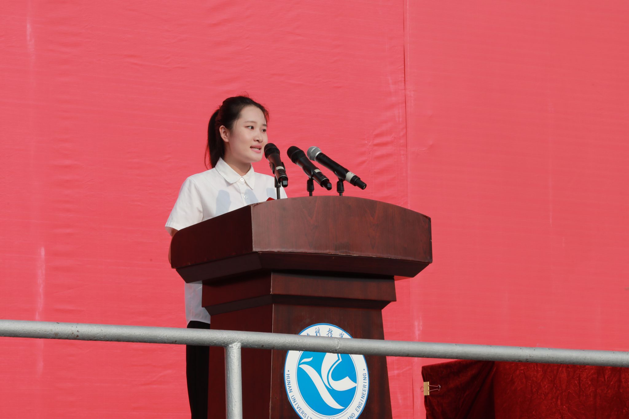 校友代表、1988届英语系毕业生邹丽娟深情回顾了在学校的成长故事,与大家分享自己的创业历程。她说强大的祖国是我们坚强的后盾,我们要热爱祖国,热爱家乡;她希望同学们心怀家国,感念母校,坚持学习,努力进步,不负青春,砥砺前行。