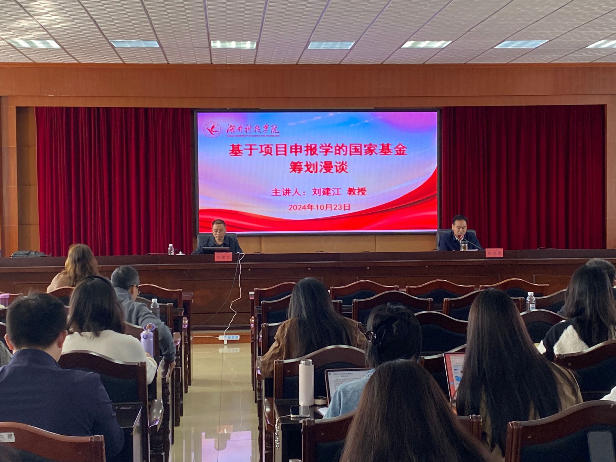 本网讯(通讯员 刘芳)10月23日,长沙理工大学刘建江教授应邀来我校作国家社科基金项目申报辅导报告。各教学学院院长、分管科研的副院长、科研办主任以及科研骨干教师百余人参加会议。会议由校党委副书记、校长黄创霞主持。