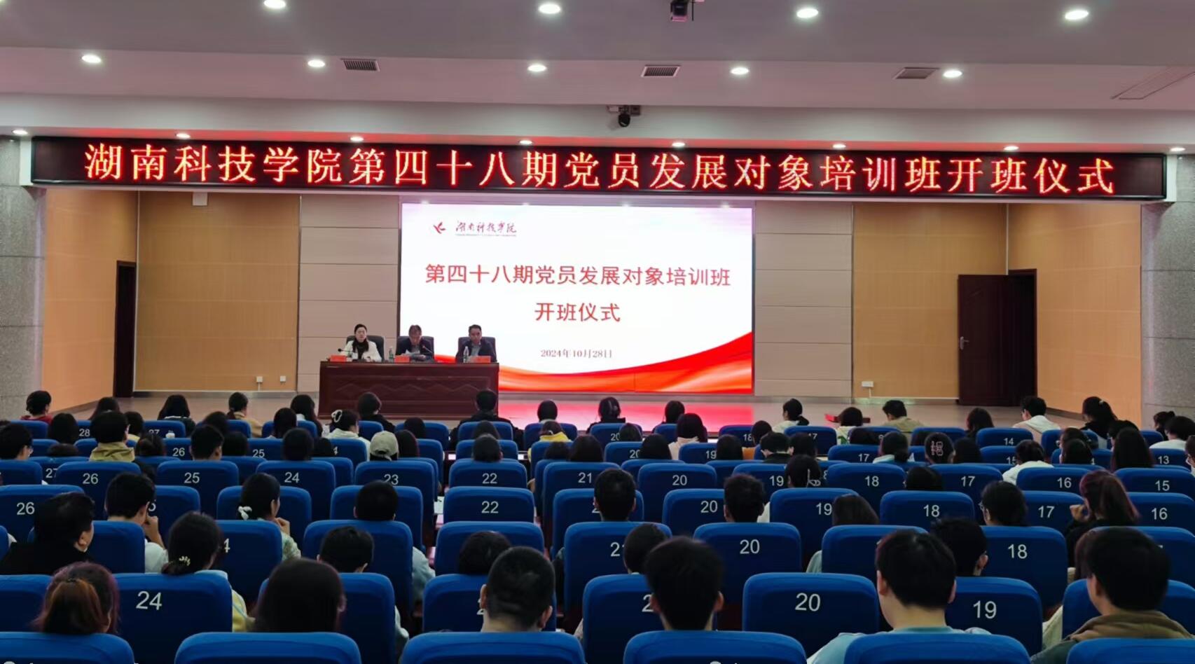本网讯(通讯员 杨喆 杨新花 王博)10月28日,学校第四十八期党员发展对象培训班开班仪式在潇湘大讲堂成功举办。校党委副书记、党校校长、宣传统战部部长宋宏福,组织部副部长、党校副校长刘铮出席开班仪式,仪式由组织部干部教育科科长雷琼主持。
